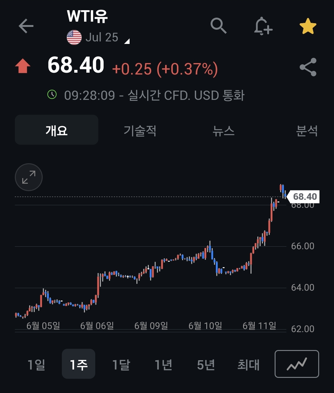 이러한 복합적 요인들이 겹치며 WTI 선물은 최근 몇 거래일 동안 4~5%대의 급등세를 보이고 있습니다.