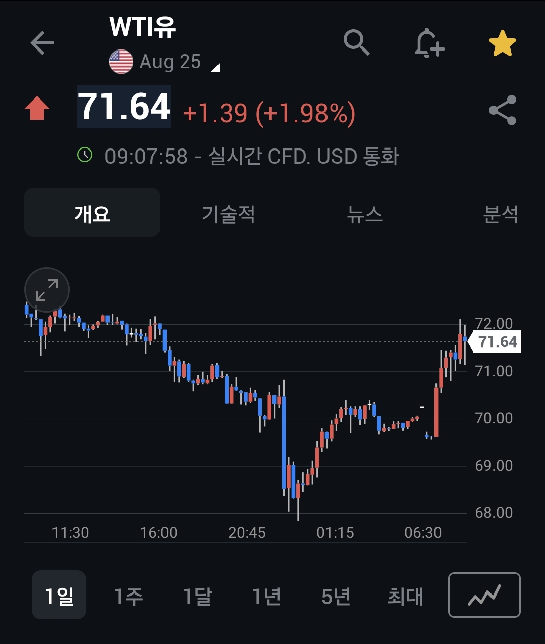 ▶ 요약: 70달러대에서 지정학 리스크 영향으로 강세…단기 대내외 변수에 큰 영향 받는 흐름.