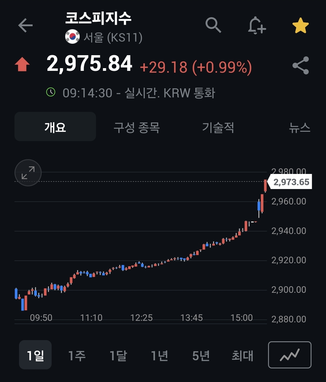 2025년 6월 16일, 코스피는 2,946.66로 전일 대비 +52.04p (+1.80%) 상승하며, 2022년 1월 이후 약 3년 만에 최고치를 경신했습니다 .