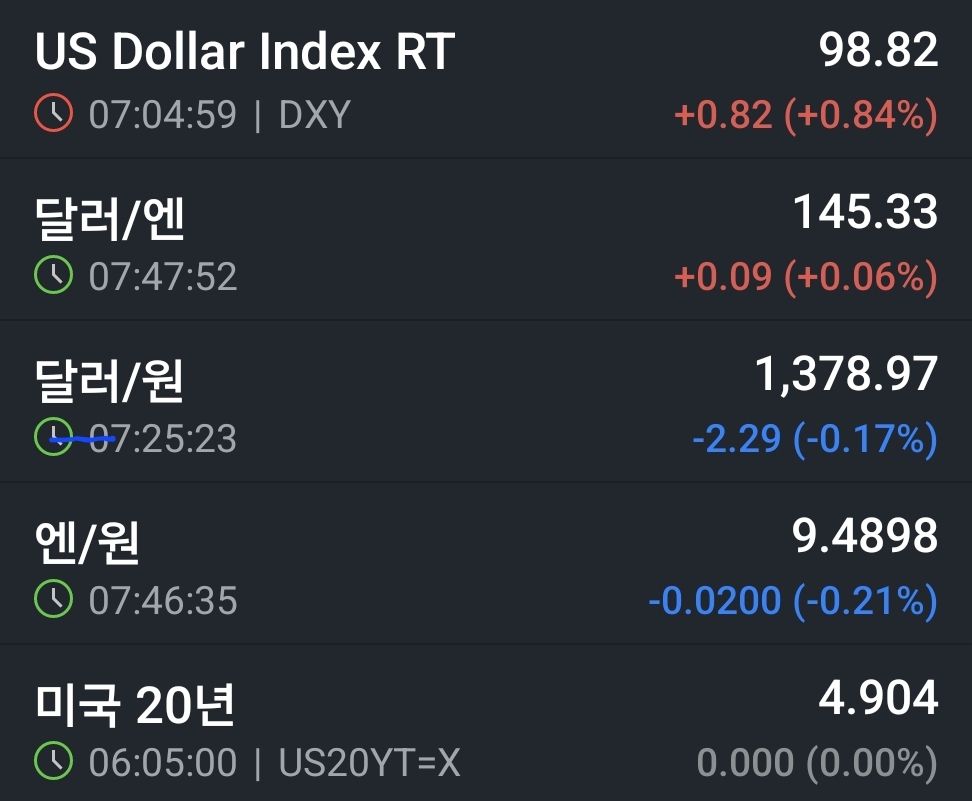 🌏 원화는 대외 리스크와 글로벌 달러 강세 속에서 약세 흐름 지속